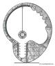 Un anello vertebrato, dalla silhouette vagamente embrionale, ovvero un utero occhiuto, una parvenza di bocca dentata, un pendolo-oculo.